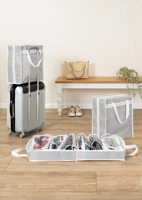 کاور کفش آلاس مدل تراول ظرفیت 6 جفت کفش و در ابعاد 40x22x35 در واقع یک جا کفشی با طرح کیف دستی است که می توانید با آن از کفش هایتان به درستی نگه داری کنید . کاربرد جالب این جا کفشی در عین سادگی یک محصول بسیار پر کاربرد است که شما با خرید این محصول می توانید کفش های زیاد خود را که در بعضی از فصول سال به آن ها احتیاج ندارید داخل آن قرار داده و در زیر تخت و یا داخل کمد قرار دهید و حتی در سفر به چمدان خود متصل کنید که هم به صورت یک جا و مرتب نگهداری شود و هم از ورود گرد و خاک به روی آن جلوگیری شود . با توجه به وجود کالای غیر اصل در بازار در هنگام خرید به نام و نشان آلاس دقت نمایید.