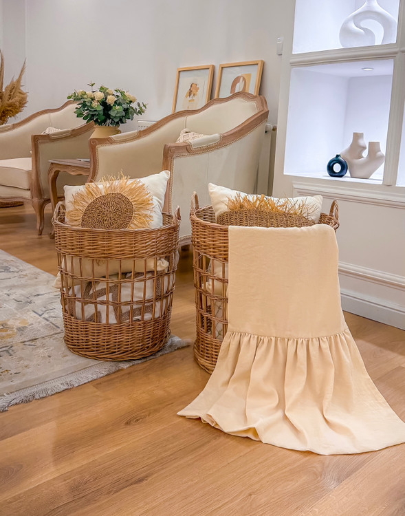 کف این سبد نیز بهصورت بافته شده طراحی شده تا در هر شرایط آبوهوایی مقاوم و پایدار باقی بماند. ضمن اینکه بهراحتی قابل شستوشو بوده و عمر بالایی دارد. بافت باز و سنتی این سبد، فضای خانه را گرم و صمیمیتر میکند و میتواند در چیدمانهای متنوع مانند: